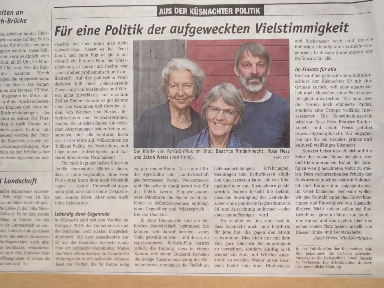 Für eine Politik der aufgeweckten Vielstimmigkeit Veröffentlicht im Küsnachter am 09.Mai 2019 Guest User22. Mai 2019 Facebook0 Twitter 0 Likes